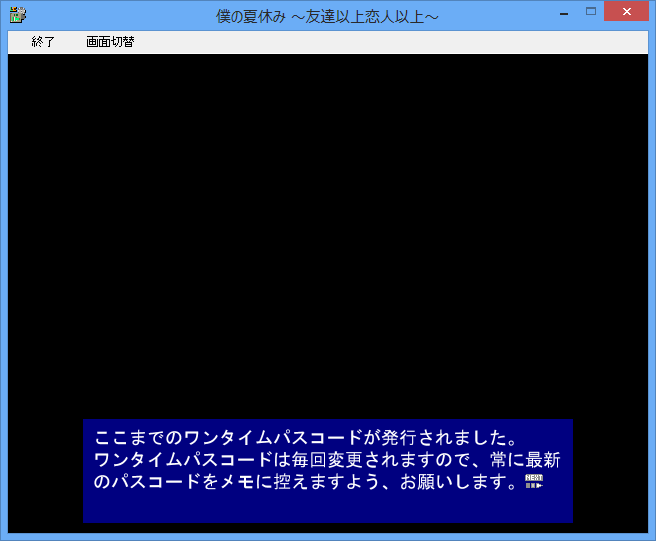 - 『僕の夏休みシリーズ』第2作目専用ワンタイムパスコードを発行するようにした。